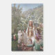 This design features a painting by the British Pre-Raphaelite artist John Collier (1850–1934). It captures a moment of courtly celebration in the legendary Arthurian world. The scene depicts Queen Guinevere, resplendent in elegant medieval dress, leading a procession of ladies and gentleman attendants through a sunlit landscape adorned with spring flowers. Collier’s attention to costume, texture, and color is meticulous: the fabrics shimmer with jewel tones and intricate patterns, while the surrounding greenery and blossoms create a lively, almost theatrical backdrop. The painting conveys both festivity and refinement. Guinevere is the clear focal point, her poise and grace underscoring her regal authority while also emphasizing her beauty and charm. What stands out is Collier’s ability to blend historical detail with a sense of romanticized legend. The scene feels authentic to the medieval imagination, yet it is infused with a dreamlike quality, emphasizing the timeless allure of Arthurian mythology. The Queen is leading a May Day procession inspired by Alfred, Lord Tennyson's poem "Idylls of the King". She has red hair that is elegantly plaited. Light and color are used to heighten the mood: golden sunlight filters through trees, casting delicate shadows and highlighting the flowing lines of the queen’s gown, giving the work a luminous, almost ethereal quality. The artwork is both a celebration of medieval pageantry and an exploration of mythic romance. However, there is perhaps also a hint at the underlying tension of Guinevere's affair with Lancelot, which foreshadows the downfall of Camelot, the legendary court of King Arthur.