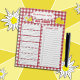Planejar refeições antecipadamente, poupe muito tempo! Este bloco de anotações do planejador de refeições da família é a ferramenta perfeita para atingir esse objetivo. Escreva ideias jantadas, e compras que você precisará para comprar. Aguente-se na geladeira com um ímã e estará tudo pronto quando for hora de ir comprar. Esta apresenta alguns rabiscos de queijo suíços e uma flor de edelweiss sobre um fundo de Gingham vermelho e branco. © ArianeC Ilustrações — Todos os direitos reservados