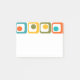 Este bloco de notas Poste tem um design moderno do século médio de quatro retângulos arredondados em quatro linhas com ovais dentro em laranja, amarelo, verde e turquesa.