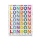 Retro London England poster com texto colorido.