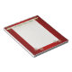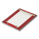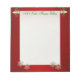 Bloco de notas personalizável vermelho de 5,5" x 6" com uma imagem de pergaminho de flur de lis com quatro flocos de neve no fundo. Veja toda a coleção do Bloco de Notas de Natal na categoria OFFICE na seção HOLIDAYS.