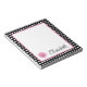 Este bloco de notas divertido apresenta bolinhas negras e brancas clássicas com uma margarida rosa e preta. Personalize com sua escolha de nome ou texto especial.
