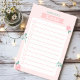 Rosa Floral Rosa Girly Personalizado Para Fazer Lista De Notas De Posto. Uma chic giro rosa giro para fazer lista com flores florais cor-de-rosa e folhas verdes. Personalize este design personalizado com seu próprio nome ou texto.