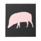 Este notável bloco de notas apresenta um porco cor-de-rosa estilo cartoon. Tem a cabeça baixa pronta para engolir qualquer comida que encontrar.