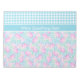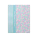 Um Notepad ou Jotter bonito e feminino para personalizar, com um design de mistura de rosas cor-de-rosa e borboletas brancas em um fundo Turquesa, agrupado com um padrão de Turquesa e Gingham de White Check. Parte da coleção Posh & Painterly 'Summer Days'.