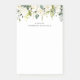 Crie uma bela impressão com estas notas de Posto floral personalizáveis. Apresenta terra floral de cor d'água de rosas brancas e hidrangeas com sotaques verdes. Estas notas florais são perfeitas como um presente personalizado.