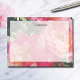 Notas adesivas personalizadas com letras de script e um fundo elegante de rosas riscadas cor-de-rosa e branca.