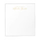 Bloco de notas moderno profissional apresentando o nome em estilo de letra moderna e profissional com texto personalizado em estilo de letra sem serifa moderna em dourado sobre fundo branco.