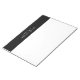 Bloco de Notas Moderno Profissional com nome em estilo de fonte manuscrita moderna branca com texto personalizado em estilo de fonte sans serif moderna branca, na borda superior preta, em fundo branco.