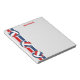 Este bloco de anotações do templo do vôlei apresenta três volleybolas coloridas em equipe com painéis vermelhos, brancos e azuis sobre faixas de vermelhos e azuis orientados verticalmente na borda esquerda - o nome do treinador é personalizável - por katz_d_zynes