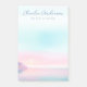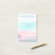 Poste as notas pegajosas que apresentam seu nome em um roteiro de estilo manuscrito sobre um nascer de sol macio e pastel com penhascos e dois pássaros.