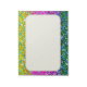 Apresentando trabalho de arte digital de brilhos em amarelo, roxo e turquesa com linhas de cruz azul brilhante. O padrão se parece com cobras. Observe que esta é uma imagem digital, de modo que não há falhas reais no produto final.