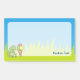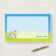 Sapo sorridente na grama e fundo do céu rouba um cone de sorvete com sua língua. Texto personalizado.