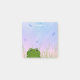 Um sapo fofo com olhos grandes está espreitando através de grama alta e esperta em um campo neste bloco de notas divertido. Bonito libélulas de tamanho variado voam sobre a cabeça do sapo contra um céu azul / rosa - personalize com seu nome - por katz_d_zynes