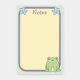 Notas bonitas com um kawaii, desenho animado, sapo verde no canto inferior direito. No topo das notas estão duas estrelas azuis felizes de ambos os lados da palavra Notas que está numa cor púrpura clara e pastel. A área para escrevendo suas notas está em um amarelo pastel com uma borda púrpura pastel. o fundo é um verde pastel com pequenas bolinhas brancas. Ideal para adicionar material escolar aos seus filhos.