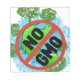 Uma preocupação global para a ambientalista conservacionista orgânica sustentável, ecológica, grande preocupada e consciente da grande preocupação com a mensagem NO OGM e um globo com a América do Norte e o topo da América do Sul com árvores, aves, pinguins, ondas oceânicas, pântanos e um grande sinal vermelho NO