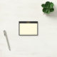 Notas adesivas com símbolo de infinito dourado elegante em moldura preta e fundo amarelo claro. O texto "Tenha um Bom Dia" pode ser personalizado.