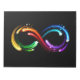 Símbolo do infinito é artisticamente pintado com cometas coloridos do arco-íris brilhantes, luminosos e se movendo rapidamente com caudas longas e flexíveis em um fundo preto. Infinito arco-íris.