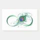 O símbolo do infinito com uma pena brilhante, verde, de pavão artístico sobre um fundo branco. Tatuagem.