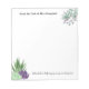 Bloco de notas personalizado com design de suculência de aquarela em cada página. O modelo está configurado para você editar toda a redação, que é escrita em uma mistura moderna de tipografia ousada e escrita legal. O texto de exemplo diz "da mesa do [nome] dedicado a ajudar suas mentes crescerem" e você pode editá-lo como quiser. É um belo presente para o professor ou para qualquer pessoa que goste de plantas.