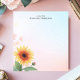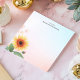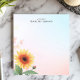Capture o calor de um dia ensolarado com este elegante bloco de notas personalizado. Uma ilustração perfeitamente detalhada do girassol agarra o canto inferior esquerdo, colocado sobre um fundo macio e pastel. Este design apresenta espaço para o seu texto personalizado, perfeito para adicionar um toque pessoal. Ideal para notas rápidas, listas de tarefas ou mensagens sentidas. Na moda e adição prática a qualquer escritório ou mesa.