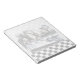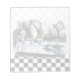 Bloco de notas de 5,5" x 6" com uma imagem vintage lavada Alice no País das Maravilhas da festa de chá do Mad Hatter com Alice, The March Hare and Dormouse em uma cinza e fundo branco e preto e branco de pranchas de xadrez. Veja toda a coleção Wonderland Notepad nos TOUCHES ESPECIAIS | Seção Favoritos para festas.