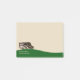 Blocos de notas pegajosos do tema das terras do acampamento ou de acampamento com imagem de uma roulotte e de uma disposição simples do texto você pode adicionar a informações adicionais ou mantê-la simples.