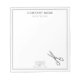 NewParkLane - Adicione alguma classe e estilo à promoção comercial do seu cabeleireiro - com este elegante e mínimo bloco de notas, com um par retrô de tesouras. Com um na moda, acabamento mínimo de 2 quadros de cinza e um modelo de texto de tipografia moderno para seu nome e endereço. Todos os estilos, cores e tamanhos de texto podem ser modificados para ajustado das suas necessidades. Um design sofisticado para qualquer cabeleireiro! Você tem desejos pessoais específicos de design? Sinta-se livre para me contactar.
