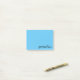 Um bloco de anotações azul adesivo com a palavra 'grata' na parte inferior.