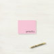 Um bloco de anotações cor-de-rosa com a palavra 'grata' na parte inferior.