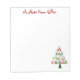 Bloco de notas branco personalizável de 5,5" x 6" com uma imagem de uma árvore de Natal caprichosa formada com as palavras "Um Natal Muito Feliz", em letras vermelhas e verdes, com capa de neve. Consulte notebook correspondente. Veja toda a coleção do Bloco de Notas de Natal na categoria OFFICE na seção HOLIDAYS.