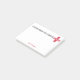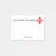 Uma nota das notas de post-it pequenas personalizadas cruz dos primeiros socorros do vermelho da enfermeira da escola. O texto lê: Uma nota da enfermeira da escola com uma cruz vermelha dos primeiros socorros no canto. Personalize com nome no vermelho. O divertimento personalizou o presente para uma enfermeira da escola. www.SamAnnDesigns.com