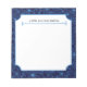 "Uma pequena nota do bloco de notas *seu nome*". Este lindo, personalizado azul marinho com padrão floral de 5,5"x6" é uma maneira adorável de adicionar um toque de elegância ao seu escritório ou material escolar. A margarida azul e a design de flor silvestre têm uma sensação reconfortante e rústica do país — um toque perfeito de finesse chic. A estética clássica nunca sai do estilo. Crie um pequeno bloco de notas encantador personalizando-o com o seu nome.