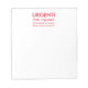 Bloco de notas urgente, engraçado em vermelho