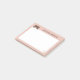 Bloco de notas adesivas cor-de-rosa com um urso marrom fofo com patinhas e bochechas rosadas. Uma marca de pata na parte inferior da página em rosa claro. Adicione o seu nome em letras marrons. Um bloco de notas adesivas de animal fofo.