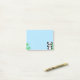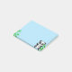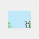 Desenho de urso panda fofo e plantas de bambu em notas adesivas azuis claras.