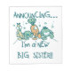 Veggies Engraçados Novas t-shirts, camisas-chave, correntes-chave, botões, bolsas, canecas, autocolantes, cartões e outras peças irmãs grandes, com olhos e texto que se lê "Anounching...I é uma NOVA IRMÃ!!".