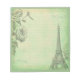 Bloco de notas verde e amarelo de 5,5" x 6" com uma imagem verde cinza da Torre Eiffel e flores verdes cinzas. Veja toda a coleção do Bloco de Notas de Cancan em TOUCHES ESPECIAIS | Seção Favoritos para festas.