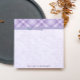 Bonito padrão de verificação roxo e um floral mole unido com uma fita simulada com uma fivela azul. Personalize com seu nome ou mensagem em letras de fontes correspondentes.
