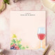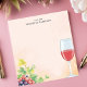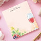 Celebre os prazeres simples com este elegante bloco de notas personalizado. Uma ilustração clássica apresentando um copo de vinho tinto e um cacho de uvas com folhas de videira adorna a parte inferior do bloco de notas. O fundo suave e quente acrescenta um toque de sofisticação. Adicione seu próprio texto personalizado para tornar este um item único e prático. Perfeito para amantes de vinho, listas de compras ou anotar notas de degustação.