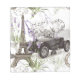 Linda arte de vintage inspirada em Paris e apresentando um carro retrô, a Torre Eiffel, selos antigos, telefone e lavanda retrô, tudo em dois tons. Colagem retrorreflectora elegante.