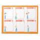 Um planejador semanal alegre com espaços para escrever durante cinco dias da semana e um para o fim de semana decorado com buquês delicados de rosas ilustrados com aquarela bordada com laranja brilhante.
