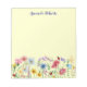 Add a touch of natural beauty to your everyday notes with our custom notepads! Designed for those who like flowers; this notepad has a bottom border of wildflowers, blues, pinks, yellows, surrounded by ladybugs and butterflies; all against a pale yellow background. Whether you're making a to-do list, jotting down notes, or dropping someone a casual note, this notepad has you covered. Perfect for personal use or as a thoughtful gift, our notepads are more than just paper—they're a little piece of art for your thoughts.