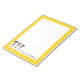 Uma borda de xadrez amarela brilhante envolve um espaço de escrevendo do vazio. O canto inferior esquerdo apresenta uma banda Mariachi com três peças tocando trompete, violão e violino. Substitua a mensagem e o nome existentes, "uma mensagem de Victoria" com sua própria mensagem e nome para personalizar seu bloco de notas.