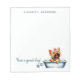 Ótima ilustração aquosa de um cão Yorkie feliz em uma banheira. Excelente para amantes de cães. Pronto para ser personalizado com o seu nome no topo e a parte inferior diz "Tenha um excelente dia!" que pode ser mudado se quiser. Excelente para amantes de cães, donos de poodles, ranjeiros de cães, babás e veterinários.