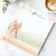 Este bloco de notas personalizado apresenta um Yorkshire Terrier fofo sentado numa prateleira em tons pastéis, rodeado por flores delicadas da primavera com uma paisagem urbana ao fundo em aquarela suave. Perfeito para amantes de Yorkies, donos de cães e entusiastas de animais que gostam de papelaria encantadora. Personalize o texto no início para dar um toque pessoal, tornando-o ideal para diário, anotações ou presentes atenciosos.