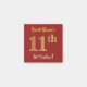 Este simples design de notas apresenta uma mensagem como "Aniversário do 11 do Primeiro Nome!", com o "11" a ter um aspecto de cor falsa/imitação dourada, num fundo de cor vermelha. O nome pode ser personalizado. Notas como estas poderiam talvez ser usadas como decorações numa festa de aniversário para alguém que comemora o seu décimo primeiro aniversário. [~Z0000173]