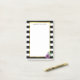 As notas pegajosas apresentam listras brancas e pretas chic com uma flor liposo bonito e uma borda falsa de folha de ouro. Personalize com um monograma, nome ou texto de sua escolha!