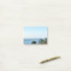 O céu azul, o mar e as árvores postam as notas. Belo céu azul claro e um mar calmo acolhendo árvores verdes para proporcionar uma cena natural relaxante. Um ambiente adorável para se resumir a todas essas ideias e pensamentos no escritório ou em casa.