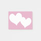 Notas com dois corações brancos sobre uma rosa claro.
